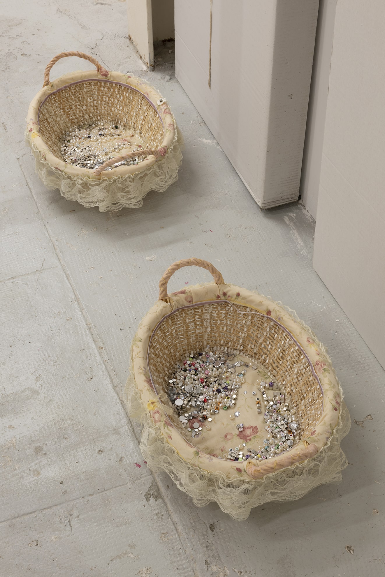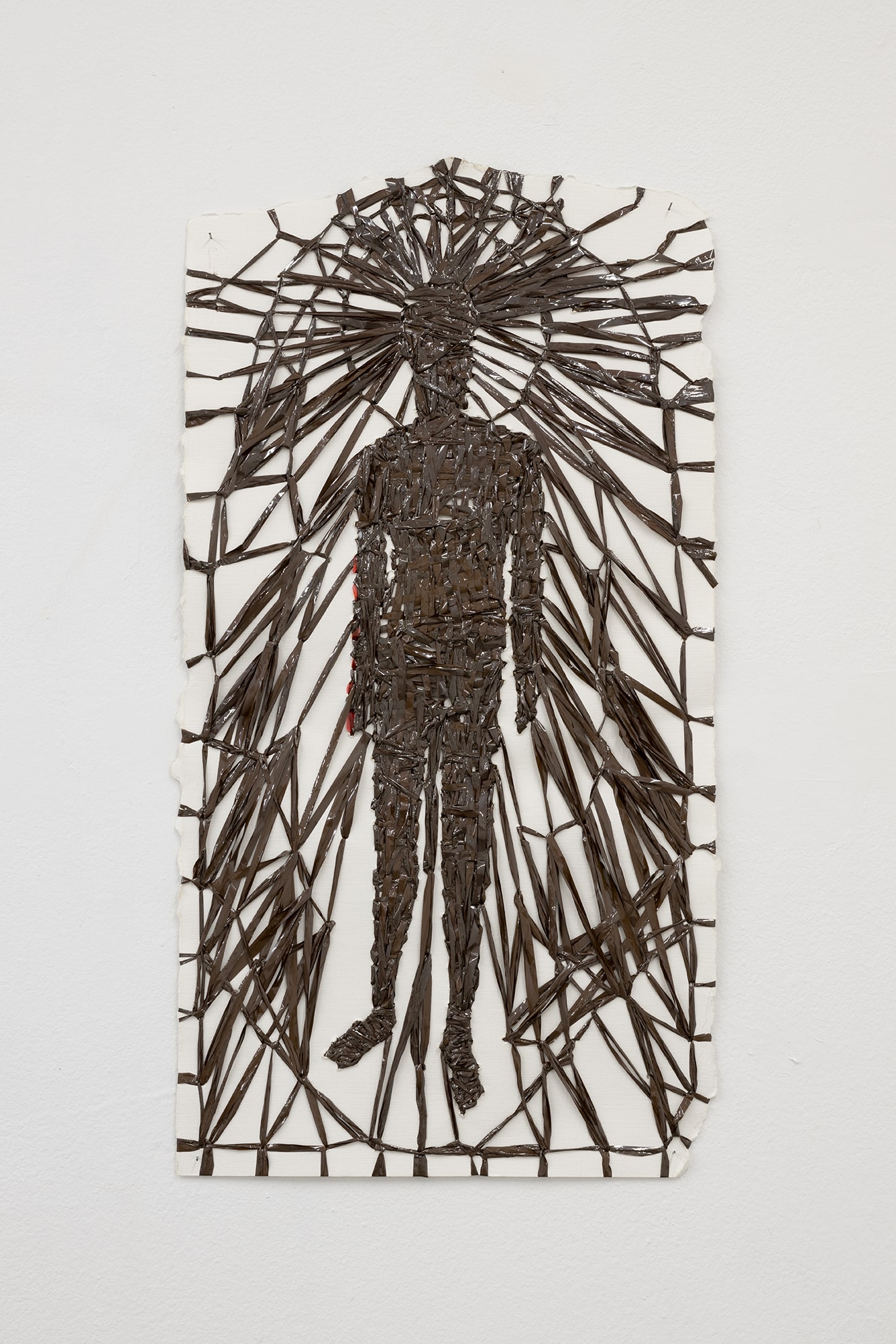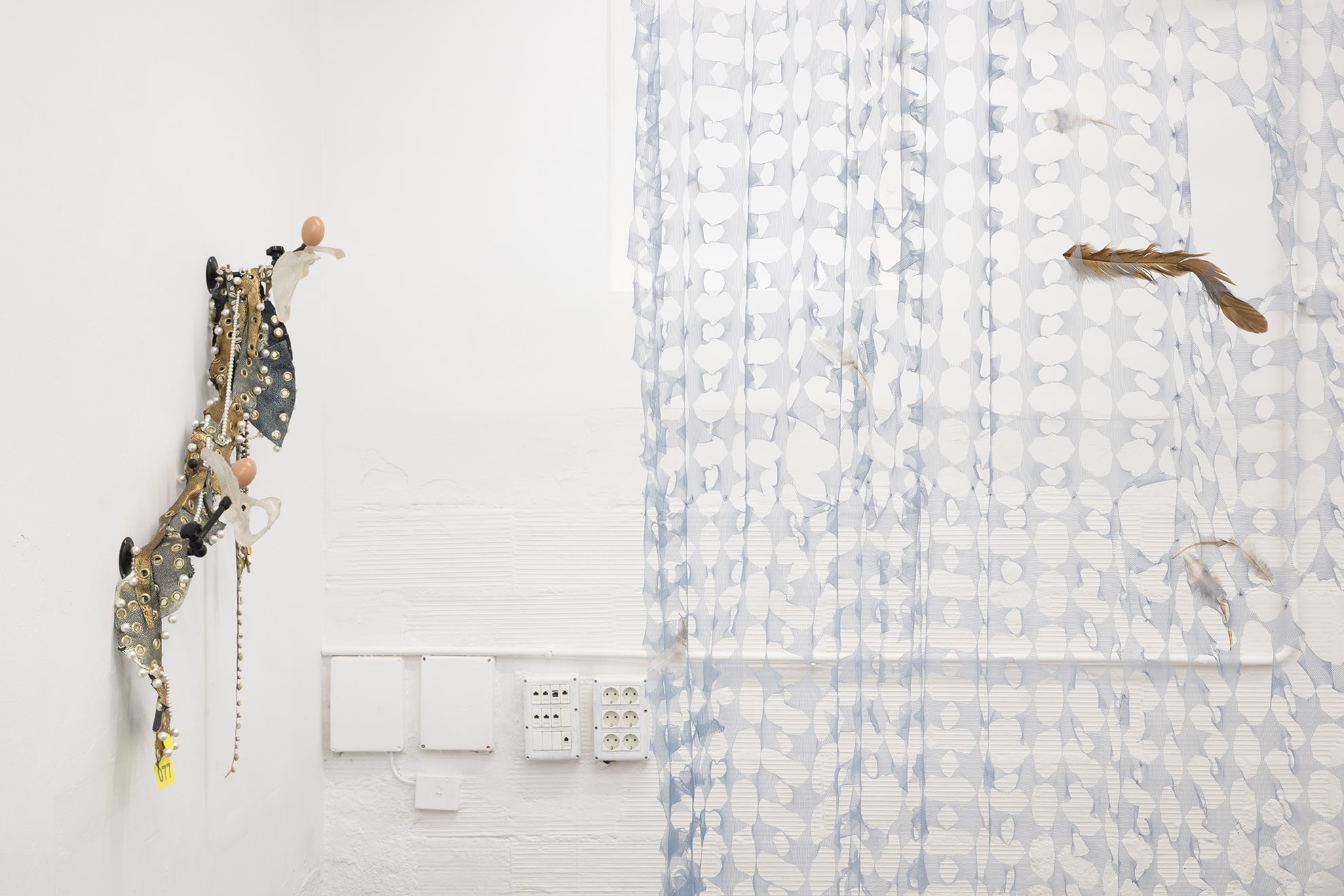 The work on paper titled St John (which gives title to the show like some advocation) is embroidered in magnetic cassette tape and nailed to the wall amidst this particularly magnetic intensive atmosphere. Berdugo speaks of this work: I like that John the Evangelist is the volatile one, the oversensitive one, and also the one to whom Jesus entrusted the care of his own mother moments before his death. His gospel is also the most questioned: many doubt that the Gospel of John was actually written by John the Evangelist. I'm interested in this elevated vulnerability of voice and testimony.