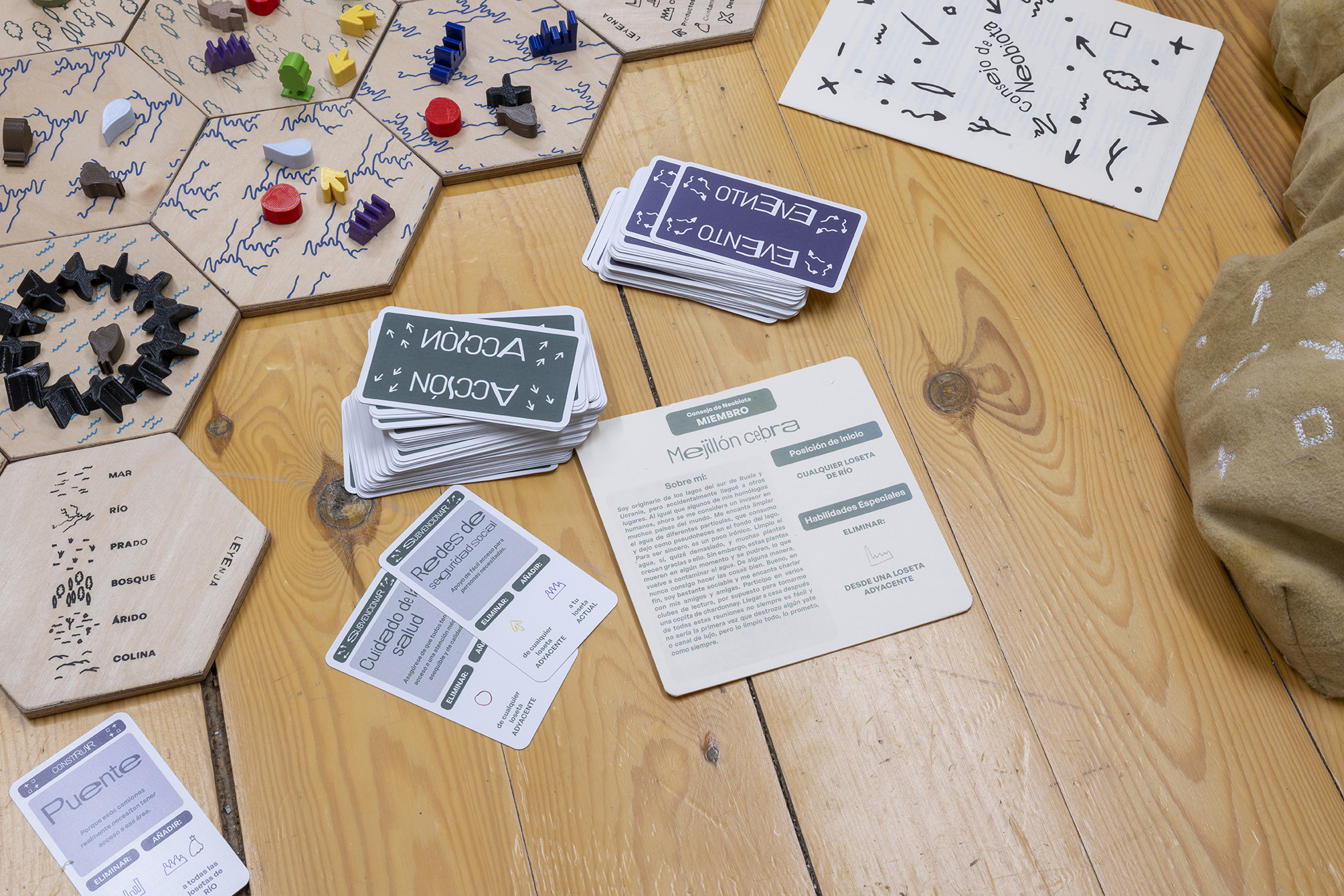 Council of Neobiota es un juego de mesa portátil creado por lxs artistas multidisciplinares Eloïse Bonneviot y Anne de Boer. El juego está inspirado en el informe elaborado en 2021 por el Grupo Intergubernamental de Expertos sobre el Cambio Climático (IPCC). Se juega desde la perspectiva de especies invasoras y los jugadores colaboran para explorar cómo, incluso siendo forasteros en un lugar determinado, pueden defenderse del poder destructivo del capitalismo, desestabilizarlo y, en el mejor de los casos, superarlo.