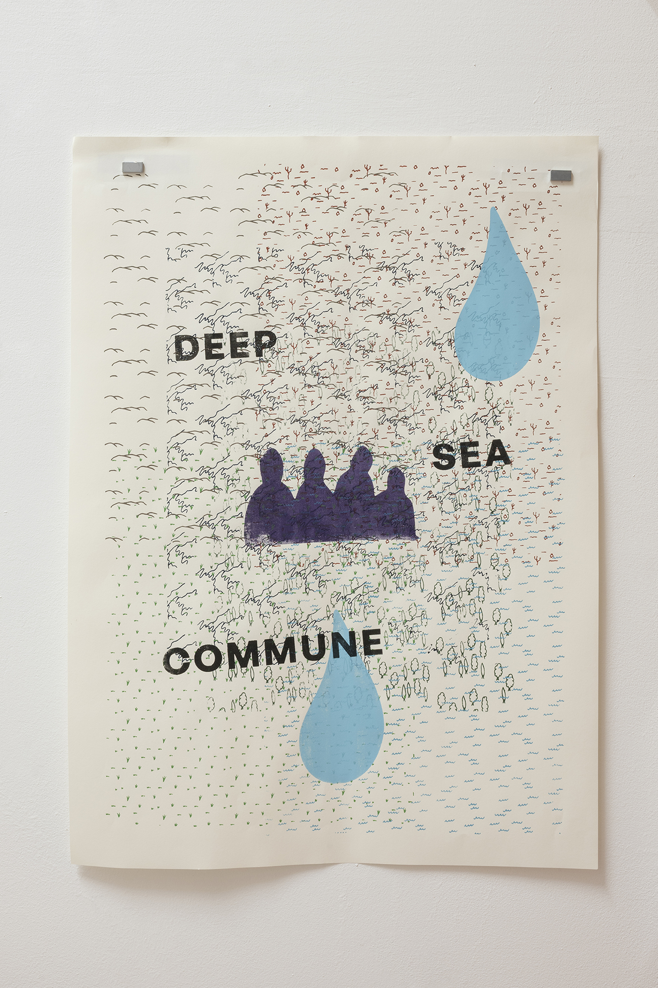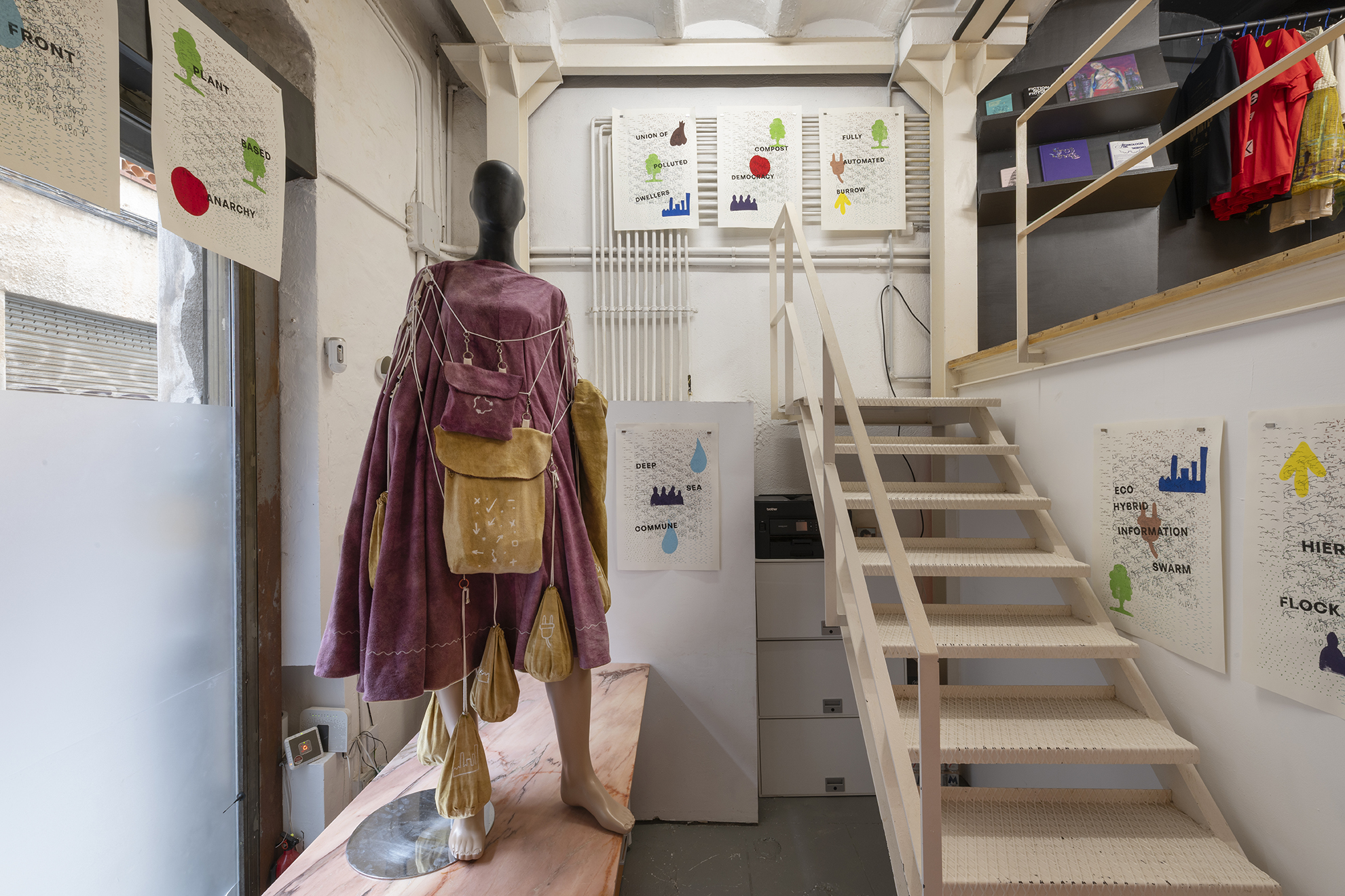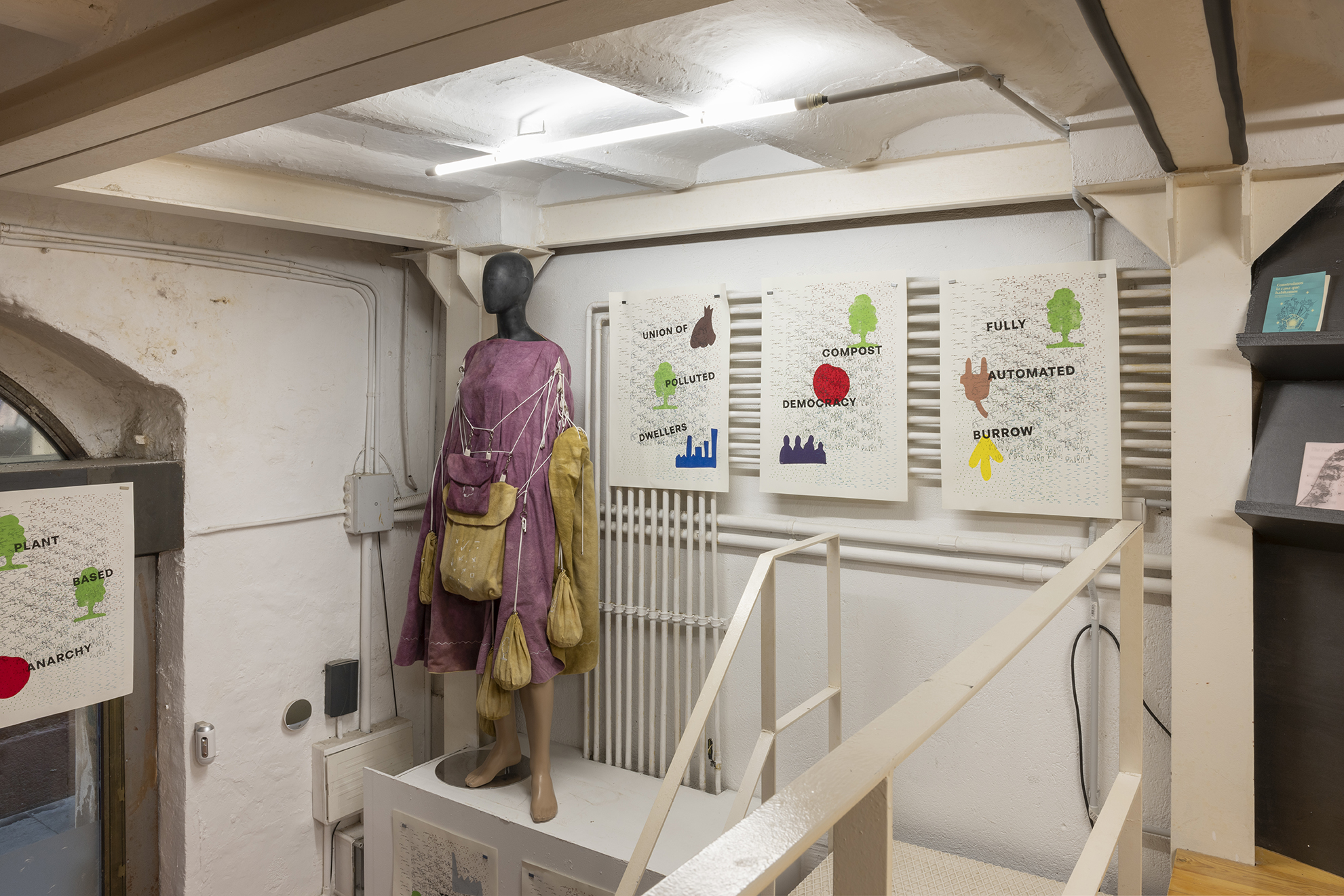 La exposición y la performance, aunque se inspiran en las ideas de Davis, se basan igualmente en el conflicto geopolítico actual, el desastre medioambiental, la fantasía, el cine y la ciencia ficción. Gasser organiza la performance como un encuentro entre tres figuras y, respectivamente, sus correspondientes esculturas y objetos: el científico con traje de materiales peligrosos, el viajero en el tiempo y un humano que lleva una camiseta con el logotipo de las Naciones Unidas. El último personaje representa la potencialidad de una institución representativa mundial como la ONU para facilitar activamente la coexistencia entre los seres humanos y la propia Tierra, independientemente de los intereses nacionales. La obra materializa, y a veces rompe, los límites de nuestra realidad terrestre e imagina una coalescencia entre fuerzas, de y fuera de, este mundo y tiempo.