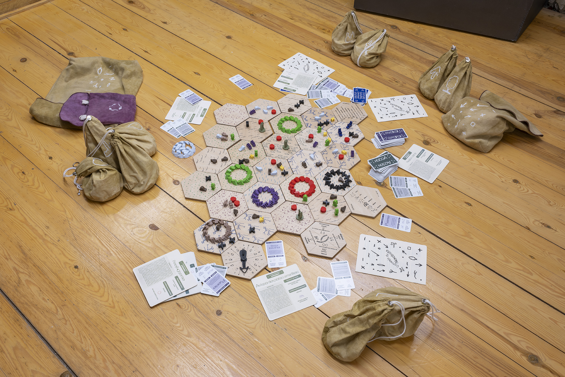 Council of Neobiota is a portable board game created by multidisciplinary artists Eloïse Bonneviot and Anne de Boer. The game is inspired by the report generated in 2021 by the Intergovernmental Panel on Climate Change (IPCC). It is played from the perspective of an invasive species and players work together to explore how, even while being outsiders to a particular place, they can still defend themselves against the destructive power of capitalism, destabilize it, and, in the best case scenario, overcome it.