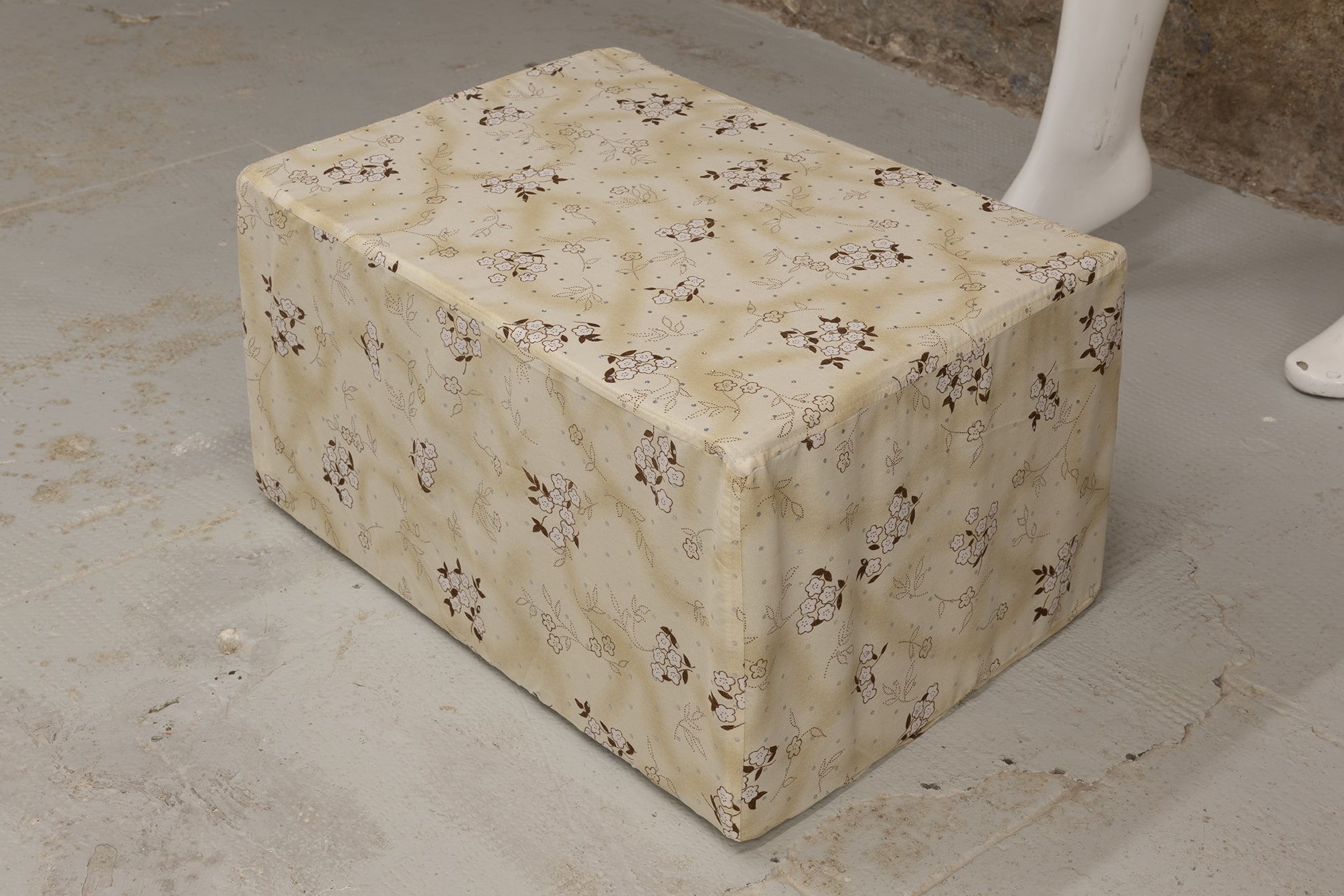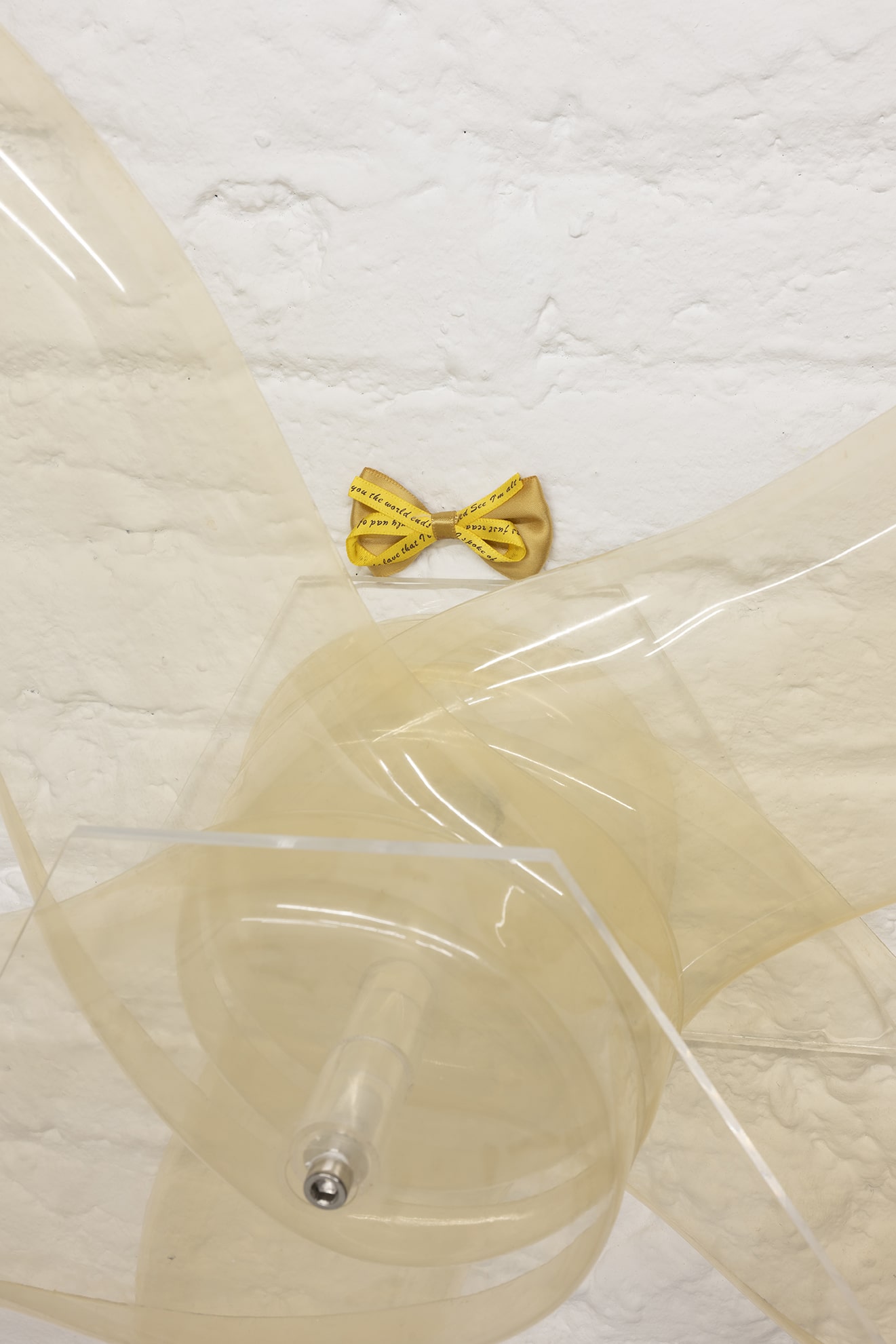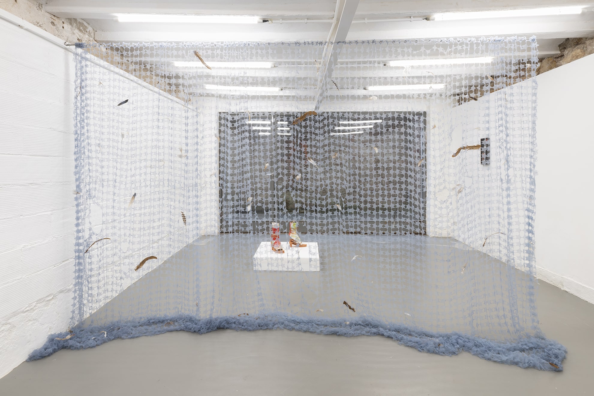In the apparent absence of a body to receive them, words hang in the air, waiting for a response. The gaps are filled with more disembodied voices, their words spoken and sometimes sung – a version of ‘All of Me’ – a song about romantic devotion, the lyrics of which describe violent, physical undoing – resonates throughout both galleries. When the body is made inaccessible, obscured by representations, and images have supplanted the expression of some deeper emotional self, that self is set adrift, impossible to quantify, identify, or express in isolation. Instead, it is dispersed amongst the objects, surfaces and spaces it inhabits.