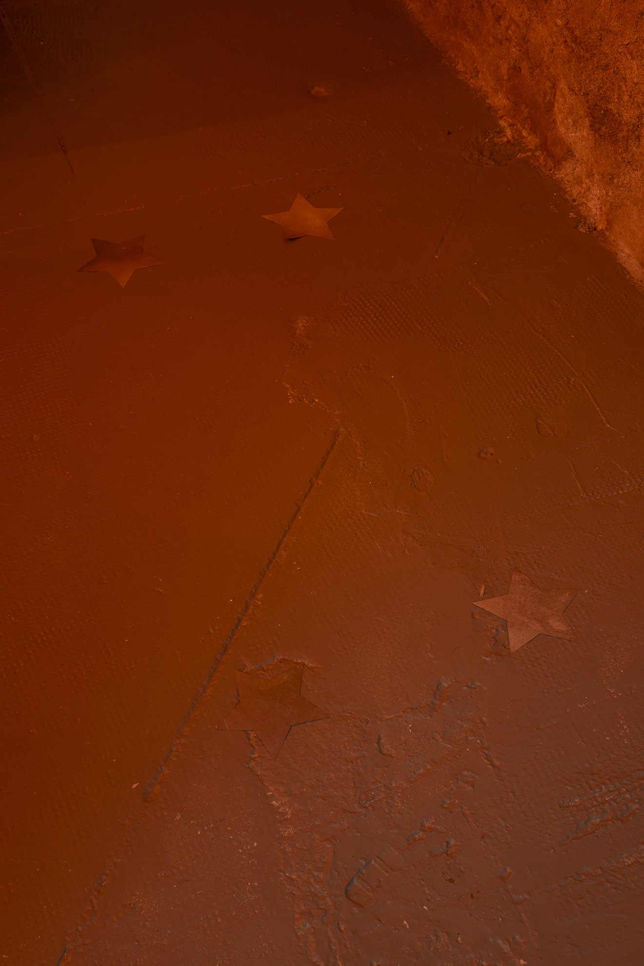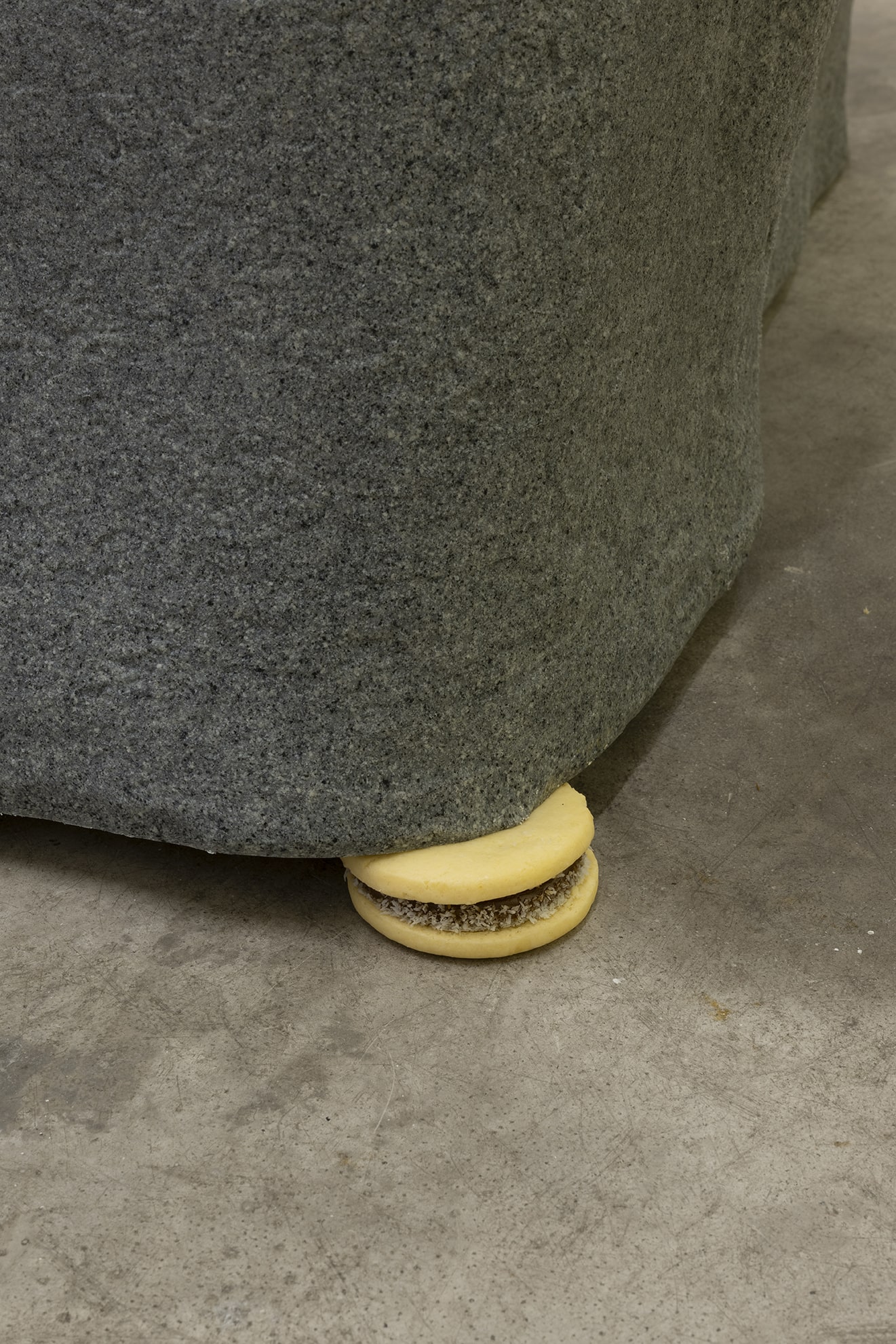 News From Nowhere is a built environment that addresses this paradoxical condition, and the struggle between making and undoing. Jones delimits this site through a triangulation of: a declarative written word ‘Yalancılar’ (Turkish for liars) registered legible from the outside balcony, an elongated undulating sandcastle structure, and the remnants of upheaval, thrown stones and smashed tomatoes. Jones materially and conceptually references both the construction of the termite mound and the process of mothering; the former as a stand in for the city and the universally experienced process of living together, and the later an acutely personally process, identifiable to some (mothers) first hand and others only by proxy. This diorama operates through a shift in scale, and the room holds the citadel and (like and the mound or the womb) it expands, develops and swells and is put in direct contact with the violence of upheaval (the rain the destruction of self). The work advocates for a utopic stability born out of agitation and instability; the moment when the space is dismantled and pulled open wide enough allow what we want to have happen, to happen.