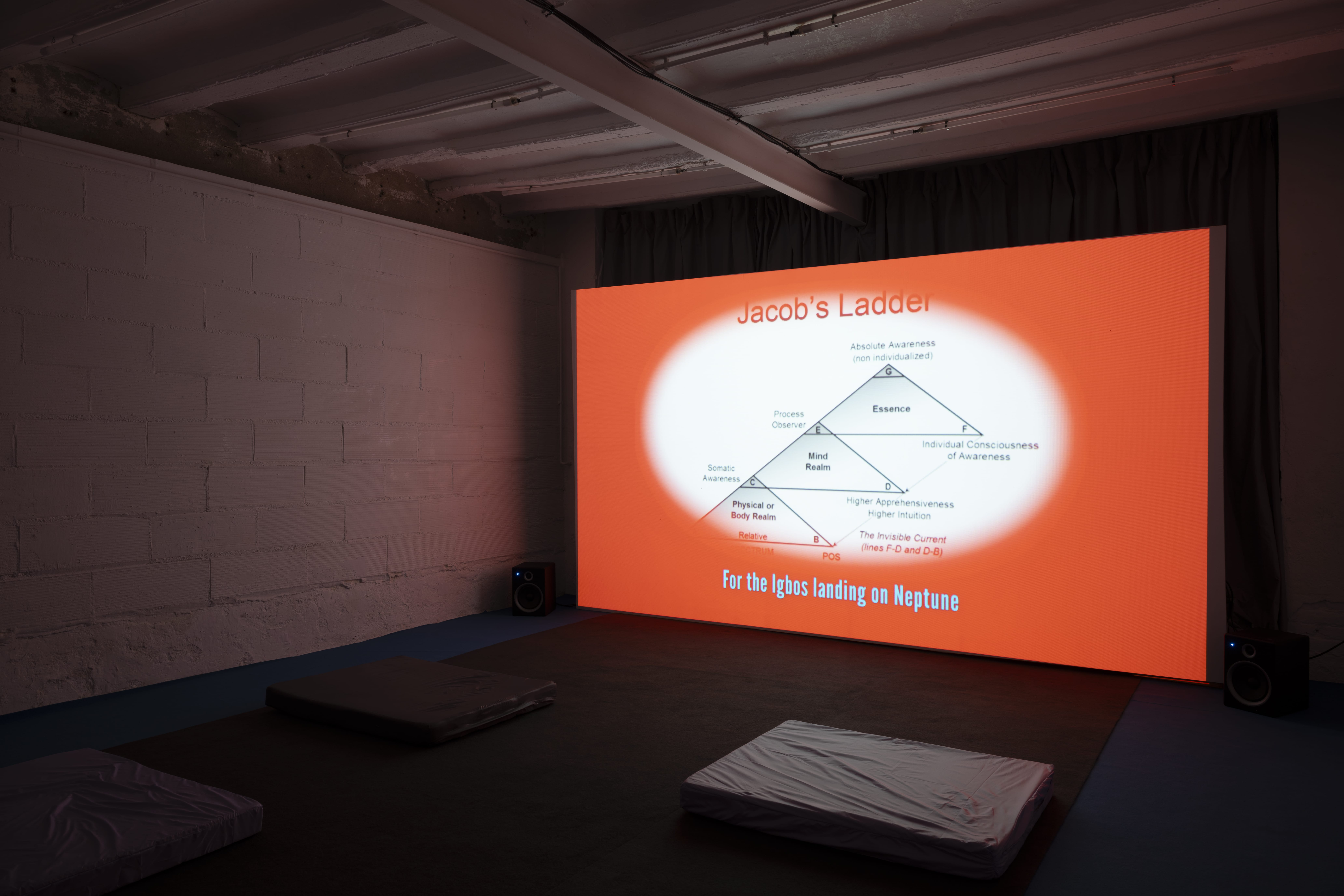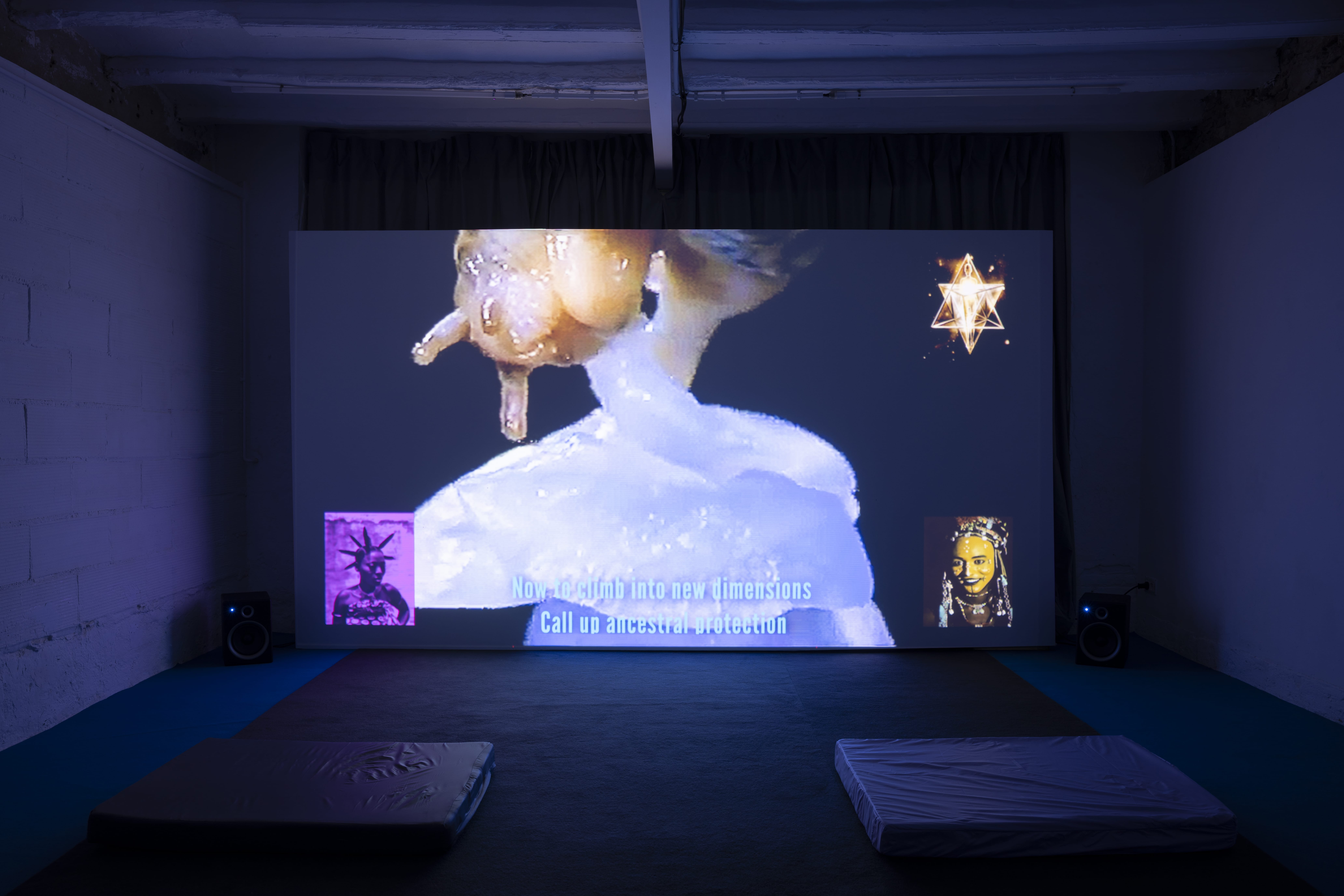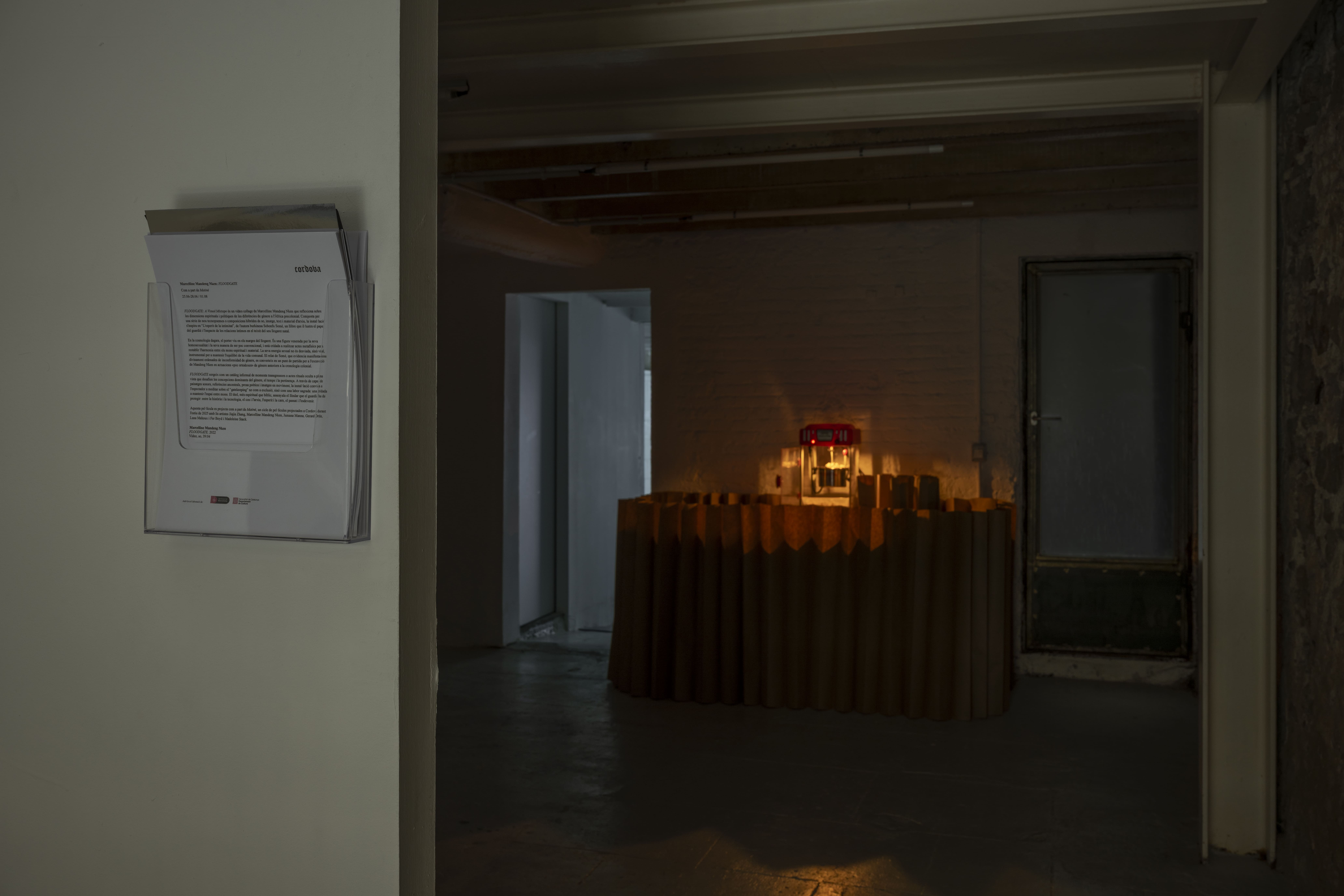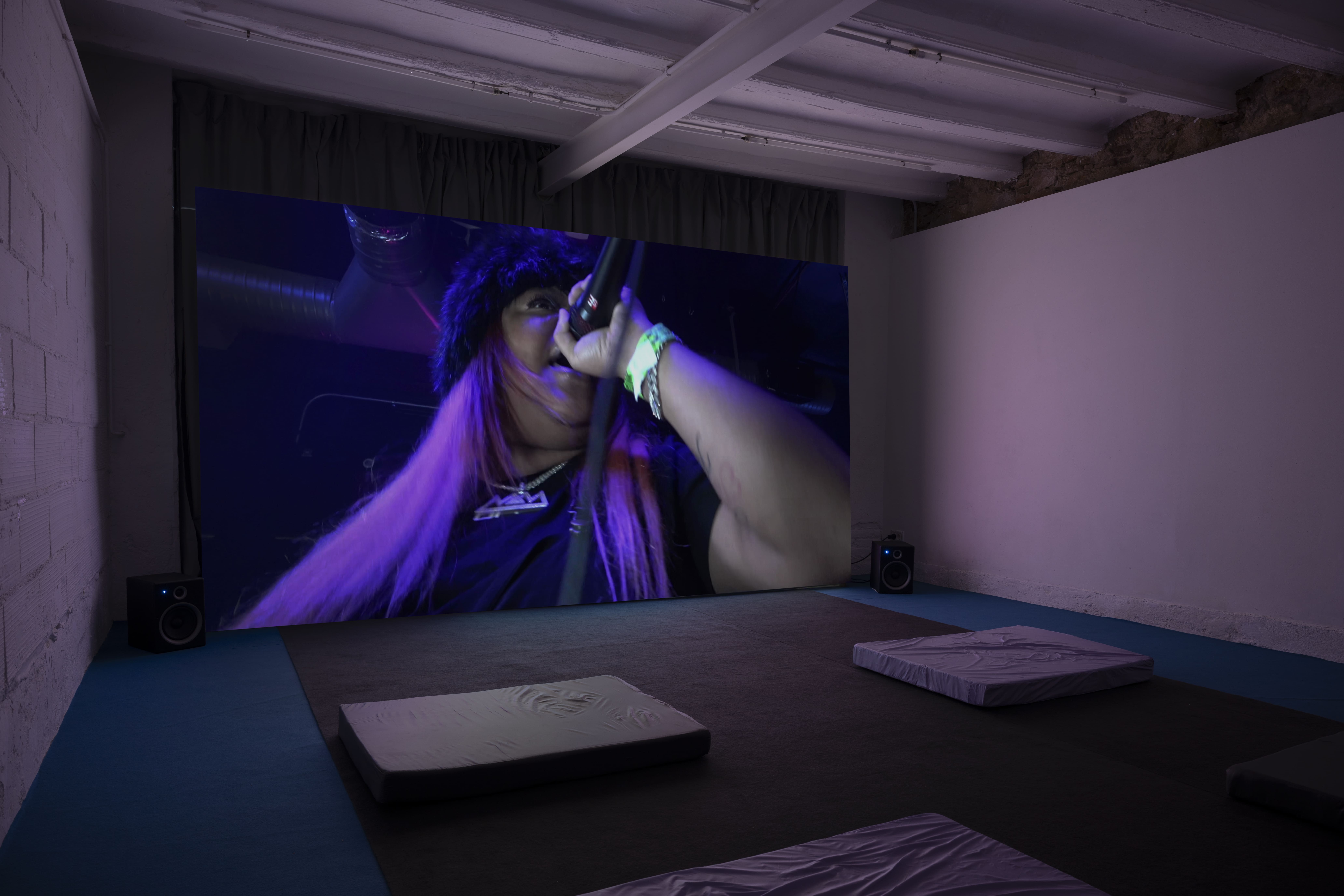 La práctica de Mandeng Nken reimagina los arquetipos de la feminidad para desentrañar la resistencia que se espera del trabajo feminizado en respuesta a las exigencias económicas, ecológicas y emocionales de la vida contemporánea. En la instalación multimedia site-specific, Indirect States of Address, reimagina el teatro como una entidad anatómica moldeada por los deseos proyectados del público. En su centro se encuentra la loca (“the madwoman”), figura literaria y arquetipo cuya mente indomable y furia expansiva se convierten en un espacio de protesta contra la coacción psicológica y social. A lo largo de la exposición, su voz fantasmal y su presencia nómada sirven como vehículo para abordar estrategias de ocultación y revelación, perturbando las ilusiones arquitectónicas del espectáculo.