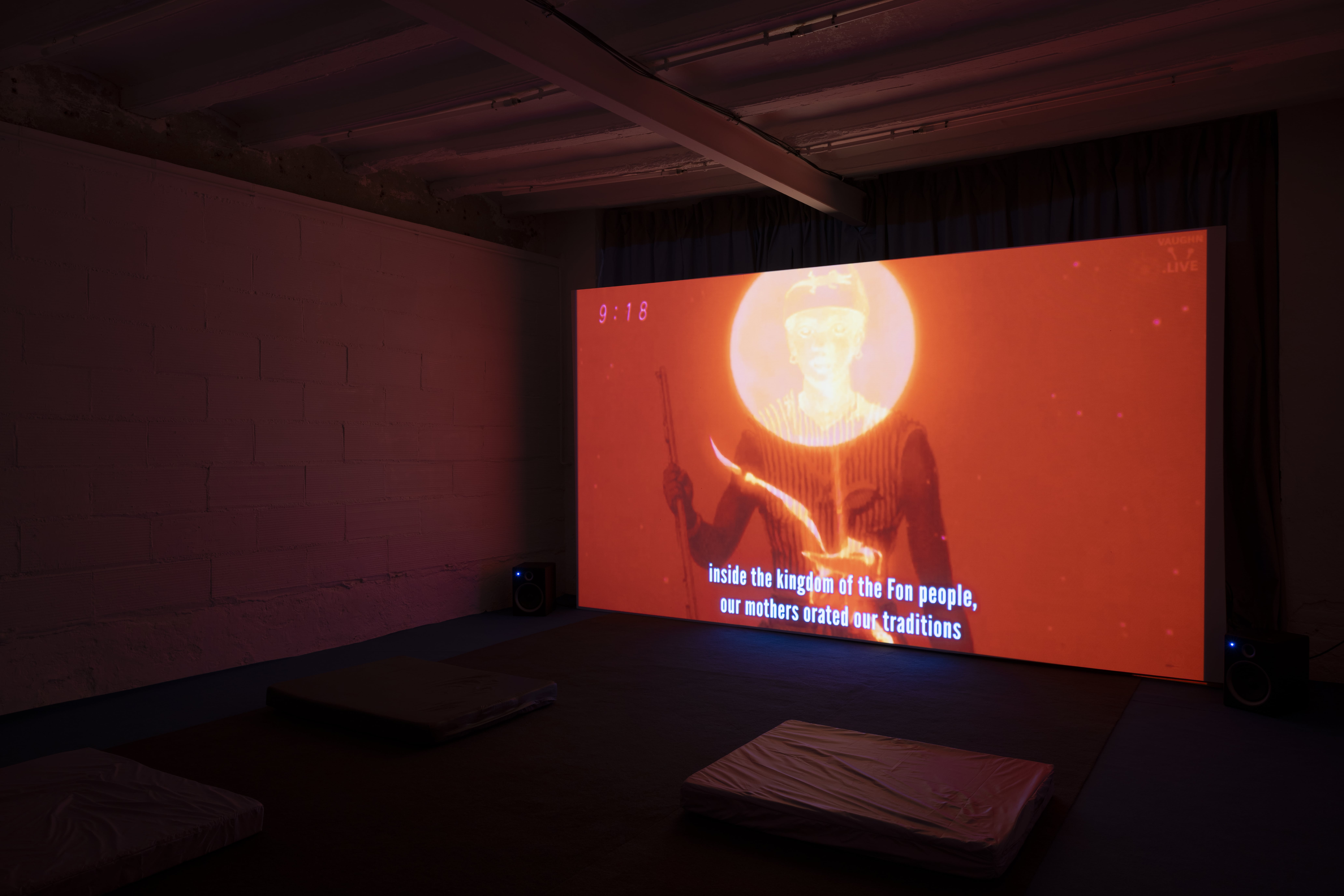 Mandeng Nken's practice reimagines archetypes of femininity in order to unpack the endurance expected of feminized labor in response to the economic, ecological, and emotional demands of contemporary life. In the multimedia site specific installation Indirect States of Address, she reimagines the theater as an anatomical entity shaped by the audience's projecting desires. At its center is the madwoman, a literary figure and archetype whose unruly mind and expanding fury become a site of protest against psychological and social duress. Throughout the exhibition, her phantom voice and nomadic presence serve as a vehicle to address strategies of concealment and disclosure, unsettling the architectured illusions of spectacle.