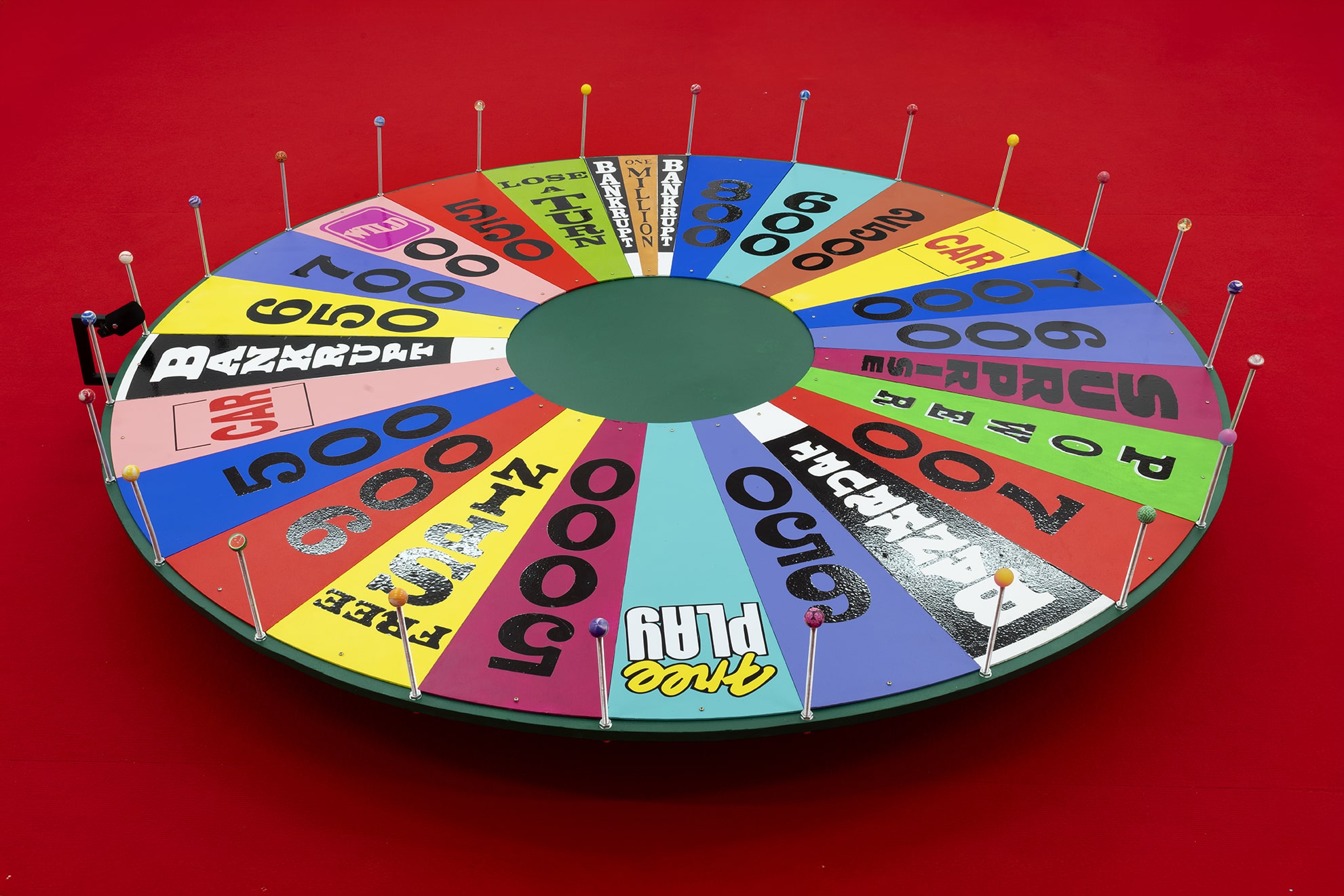 En la segunda sala hay una rueda de la fortuna funcional situada sobre una alfombra de color rojo intenso. Las proporciones de la rueda y sus veinticuatro segmentos distintos se han modelado como una aproximación a la rueda utilizada en «Wheel of Fortune», un popular programa de televisión de Estados Unidos que lleva emitiéndose de una forma u otra desde 1975. Se dice que el formato de la rueda es una mezcla de dos juegos de casino comunes: el «Big Six», que suele colocarse en posición vertical y contiene varios segmentos y clavijas alrededor de su borde, y la clásica mesa de ruleta, en la que la mesa circular gira en una dirección y una pequeña bola en la otra, deteniéndose finalmente en un valor concreto. Jones decidió no incluir el símbolo del dólar en la rueda para que los números estuvieran menos vinculados a un lugar y una moneda específicos. Aunque en esta versión de la rueda de la fortuna no hay premios, se anima a los visitantes a arriesgarse, girar la rueda y poner a prueba su suerte.