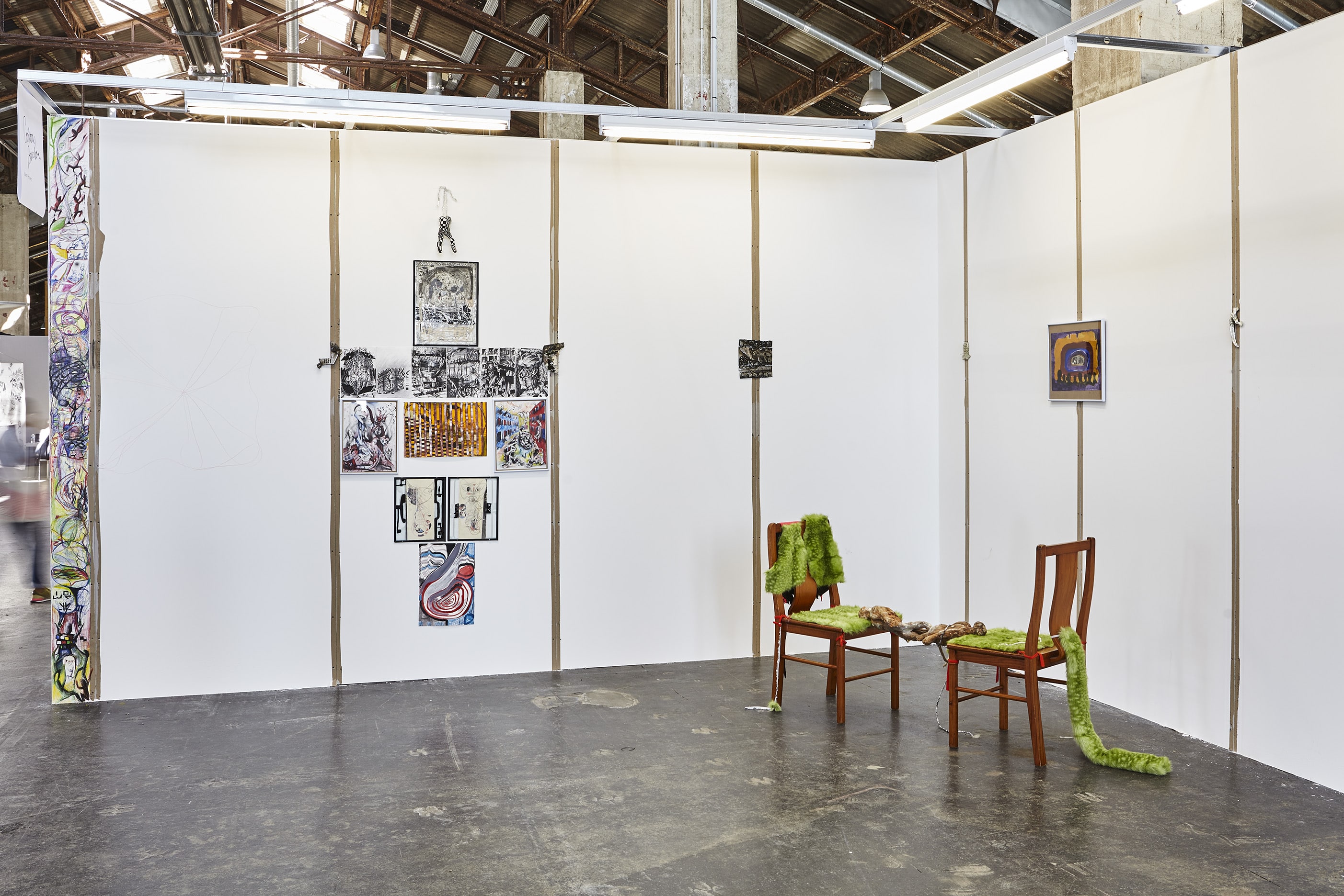 The show centers on a dialogue depicting the dissolution of a long distance relationship. It explores inherited cultural behaviors and the prescriptive narratives engendered within the environments we move through and around, and their impact on the ability of the individual to express and communicate. The architectures of the two galleries – both of which also function as domestic spaces – become the embodiments of physical and psychological distance as the conversation intensifies and the pressure of language builds around strained efforts at being ‘true to oneself’.