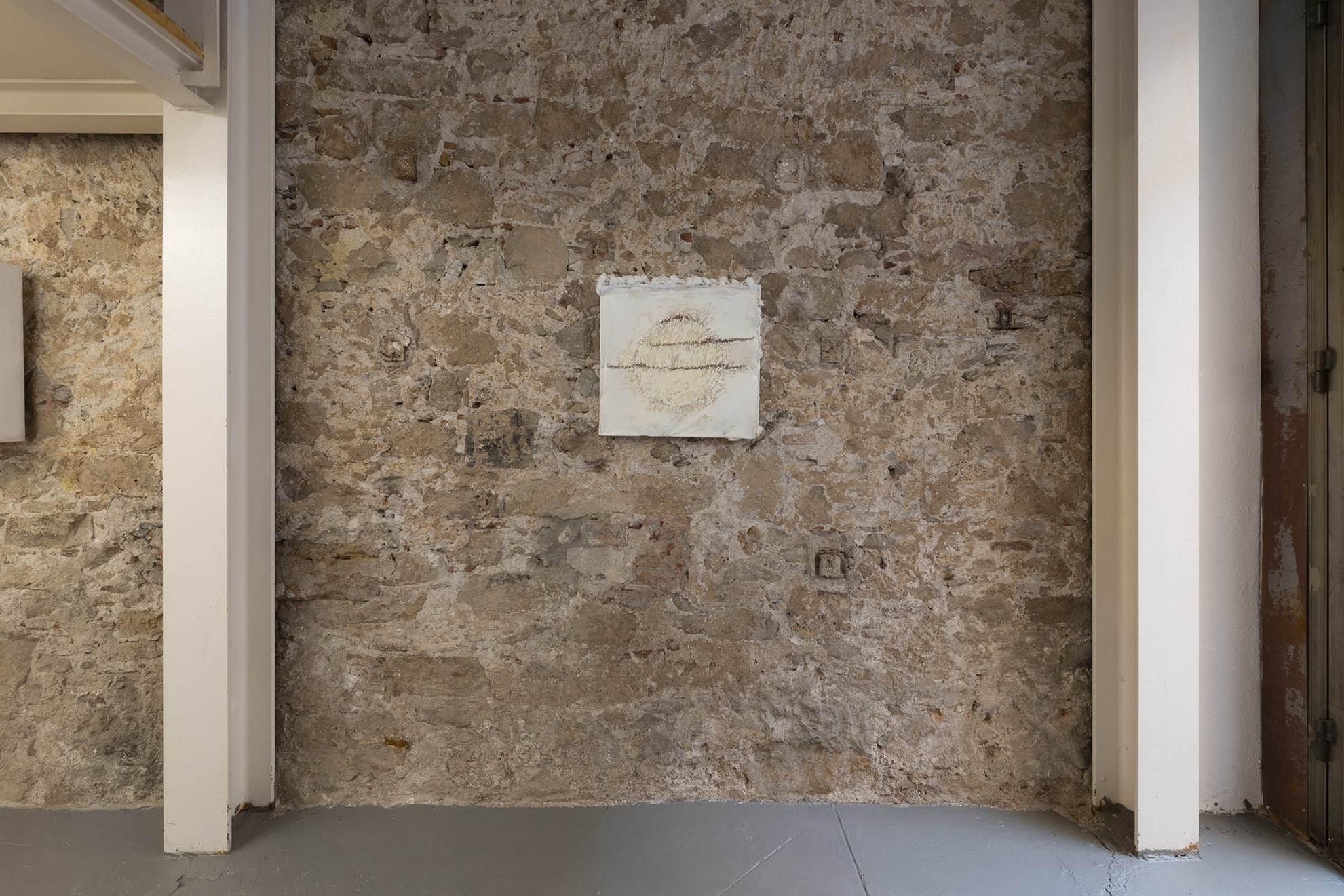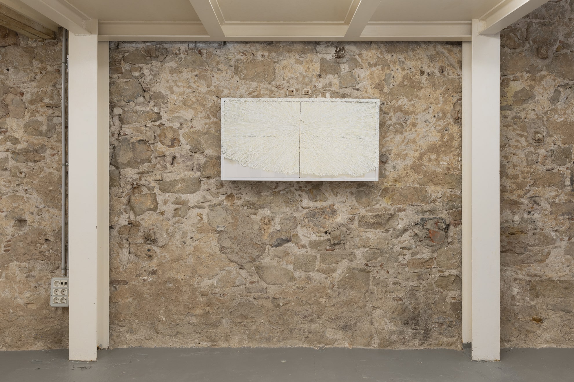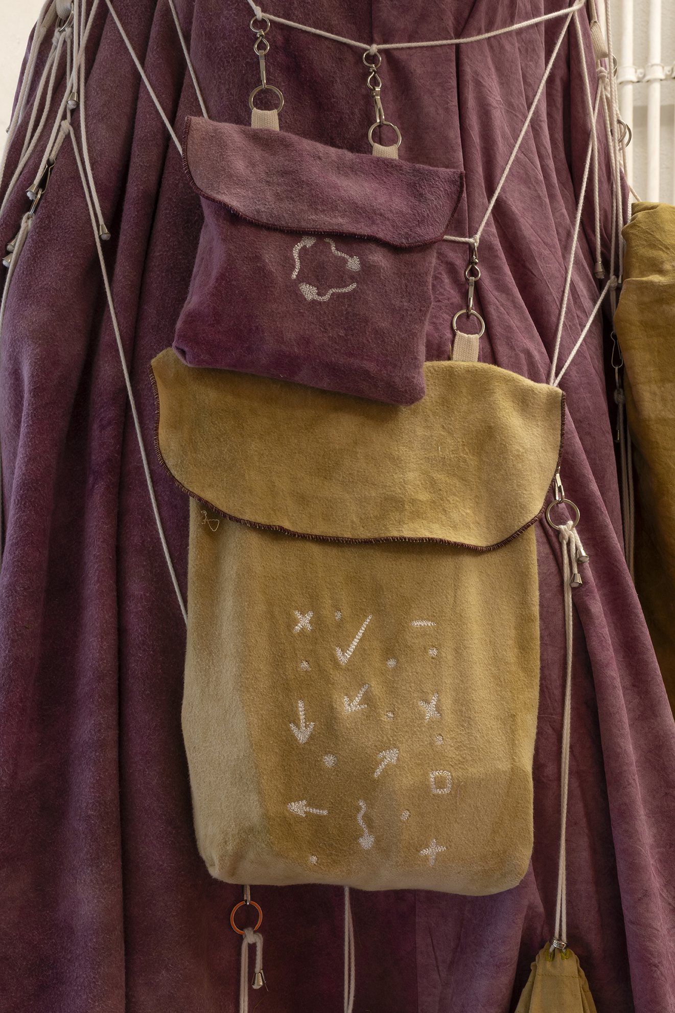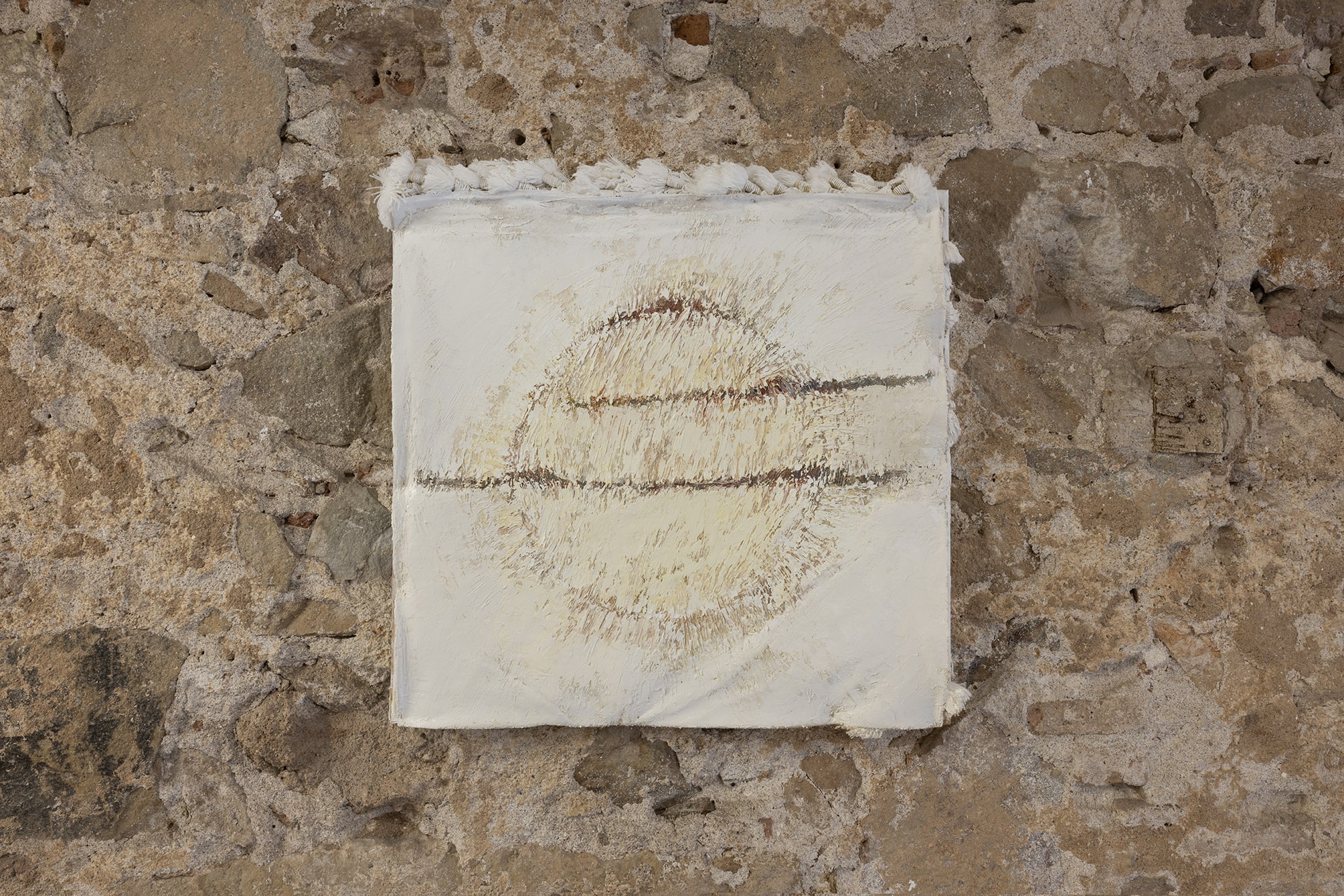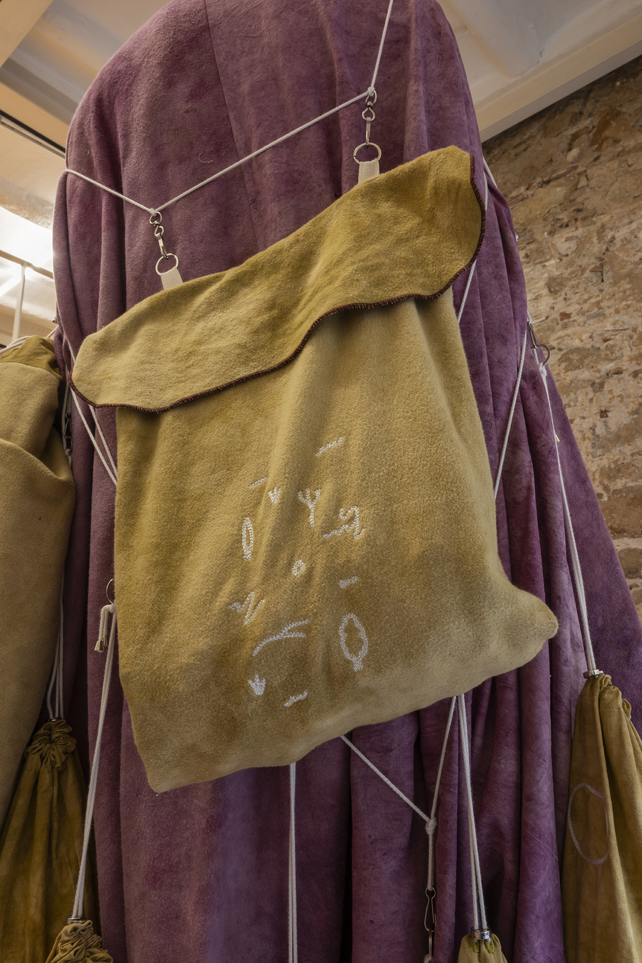 The work on paper titled St John (which gives title to the show like some advocation) is embroidered in magnetic cassette tape and nailed to the wall amidst this particularly magnetic intensive atmosphere. Berdugo speaks of this work: I like that John the Evangelist is the volatile one, the oversensitive one, and also the one to whom Jesus entrusted the care of his own mother moments before his death. His gospel is also the most questioned: many doubt that the Gospel of John was actually written by John the Evangelist. I'm interested in this elevated vulnerability of voice and testimony.