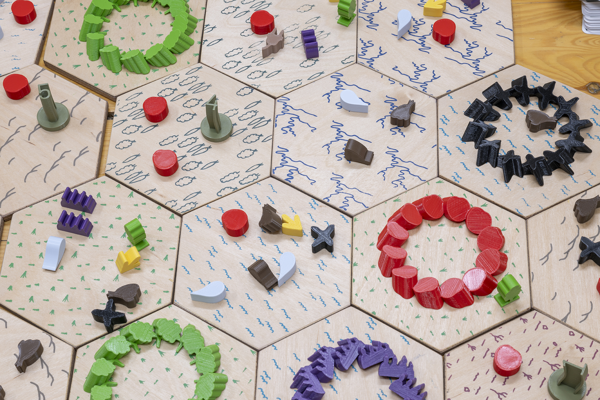 Council of Neobiota is a portable board game created by multidisciplinary artists Eloïse Bonneviot and Anne de Boer. The game is inspired by the report generated in 2021 by the Intergovernmental Panel on Climate Change (IPCC). It is played from the perspective of an invasive species and players work together to explore how, even while being outsiders to a particular place, they can still defend themselves against the destructive power of capitalism, destabilize it, and, in the best case scenario, overcome it.