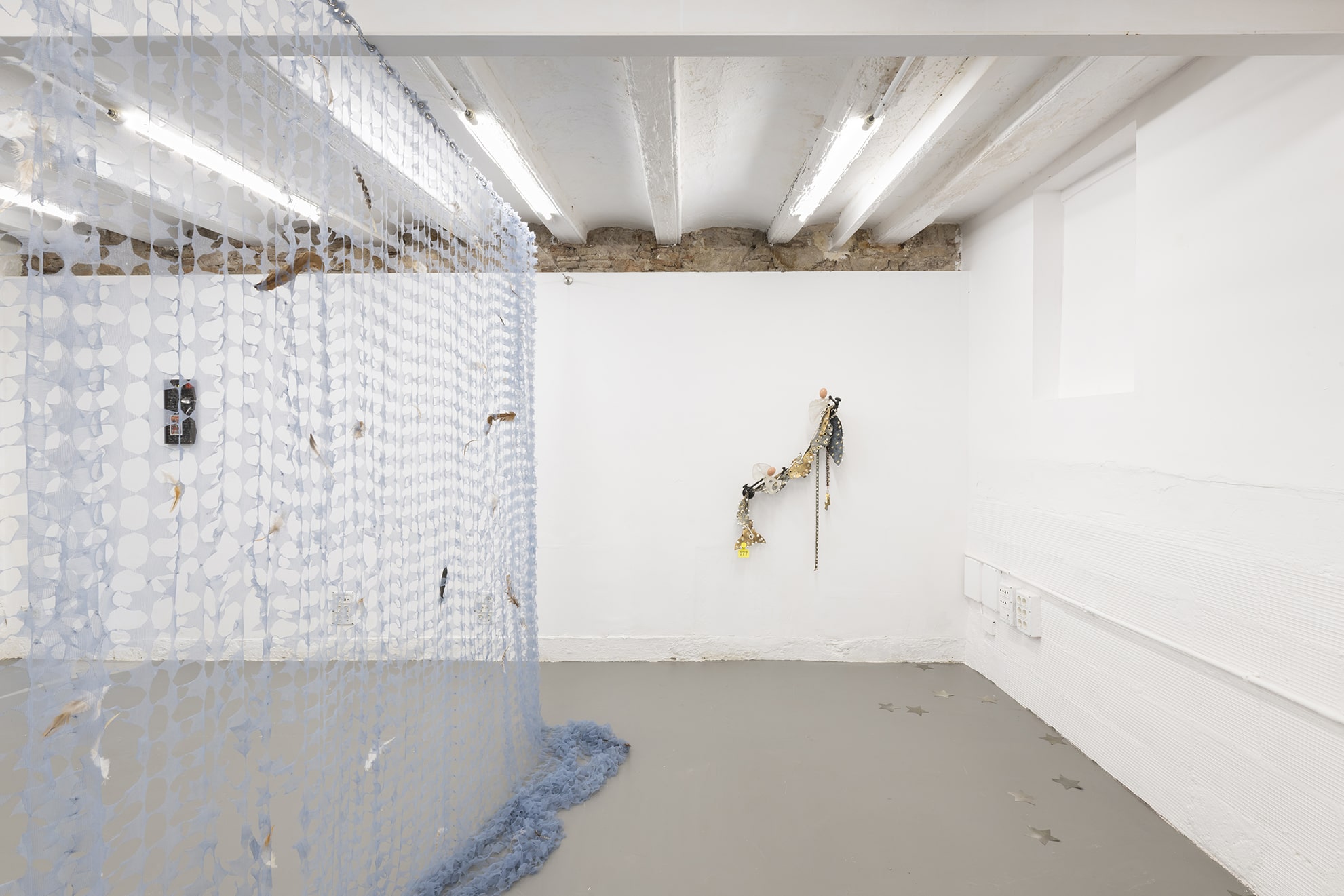 A través de una serie de arreglos escultóricos híbridos, los elementos teatrales que normalmente quedan relegados a un segundo plano se reinterpretan como intérpretes estáticos imbuidos de agencia. Aparejos, telones y asientos —reliquias de innumerables encuentros— se anclan en materiales orgánicos como huesos de resina, piel de raya y alquitrán volcánico. En estado de suspensión, estas formas exponen la labor psíquica de la observación y el fetichismo que ata al público a la performance. A lo largo de las dos salas de la galería, las obras trazan las transgresiones episódicas de feminidad respetable de la madwoman, revisando manuales de domesticidad y creación de espacios con gestos que desafían la contención.