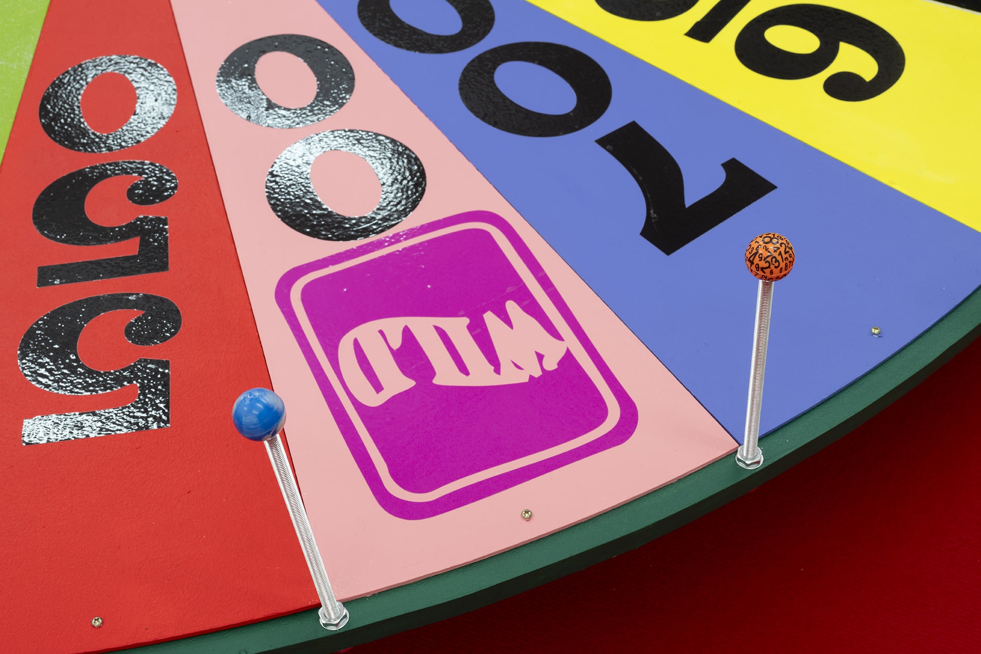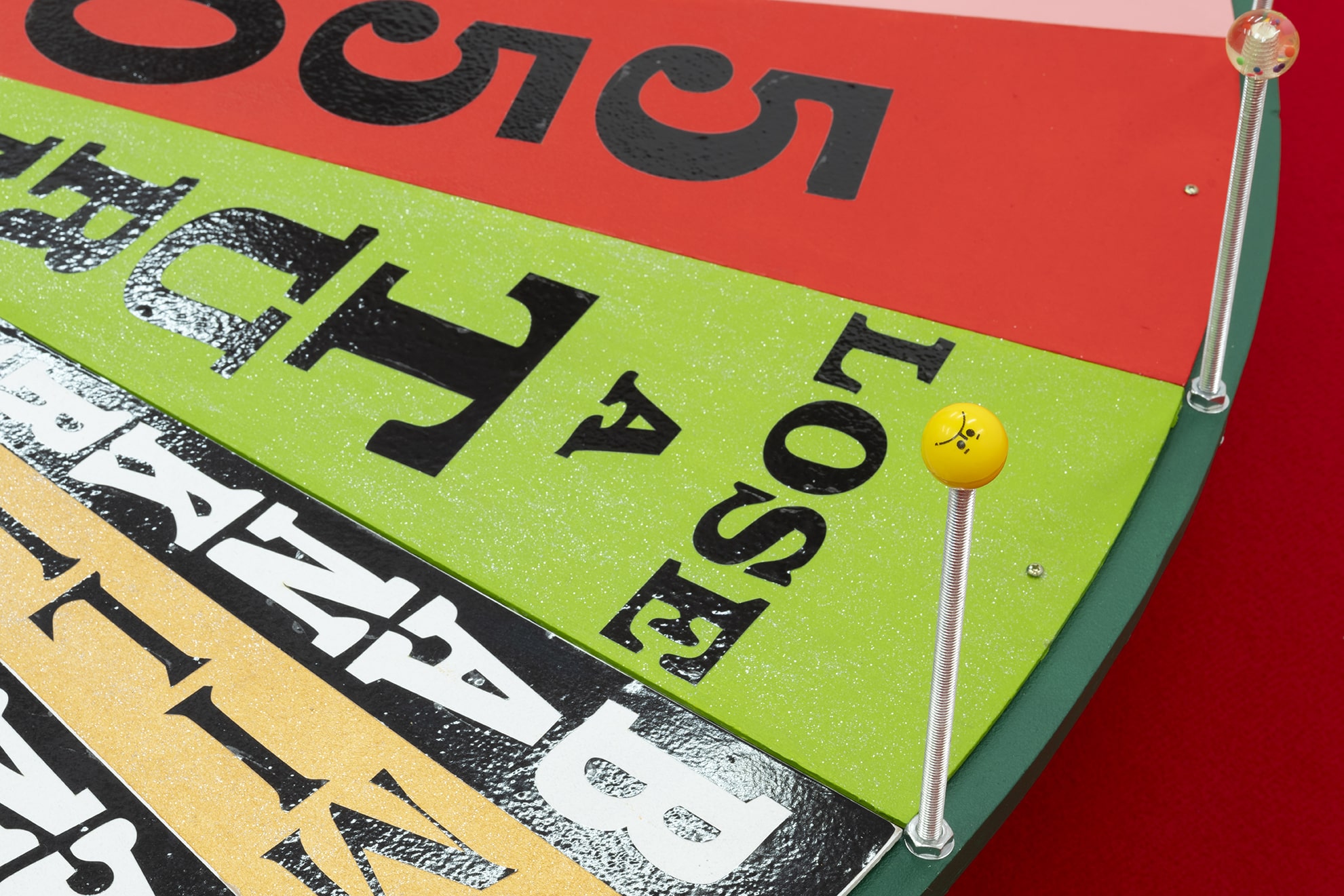 En la segunda sala hay una rueda de la fortuna funcional situada sobre una alfombra de color rojo intenso. Las proporciones de la rueda y sus veinticuatro segmentos distintos se han modelado como una aproximación a la rueda utilizada en «Wheel of Fortune», un popular programa de televisión de Estados Unidos que lleva emitiéndose de una forma u otra desde 1975. Se dice que el formato de la rueda es una mezcla de dos juegos de casino comunes: el «Big Six», que suele colocarse en posición vertical y contiene varios segmentos y clavijas alrededor de su borde, y la clásica mesa de ruleta, en la que la mesa circular gira en una dirección y una pequeña bola en la otra, deteniéndose finalmente en un valor concreto. Jones decidió no incluir el símbolo del dólar en la rueda para que los números estuvieran menos vinculados a un lugar y una moneda específicos. Aunque en esta versión de la rueda de la fortuna no hay premios, se anima a los visitantes a arriesgarse, girar la rueda y poner a prueba su suerte.